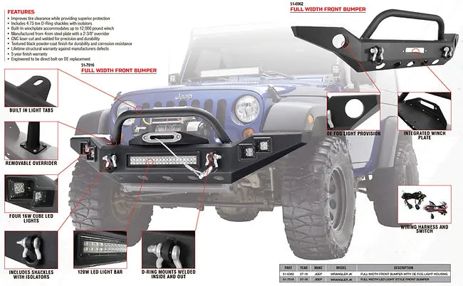 Paramount JL Full Width LED Light Style Front Bumper #51-8062